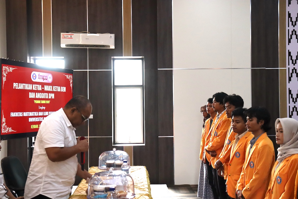 Kegiatan pelantikan dihadiri oleh Dekan FMIPA, para Wakil Dekan, Ketua Jurusan, serta Koordinator Program Studi di lingkungan FMIPA. Prosesi ini menjadi penanda dimulainya masa kepengurusan organisasi kemahasiswaan FMIPA untuk periode tahun 2026, sekaligus momentum awal bagi pengurus baru dalam menjalankan amanah organisasi.