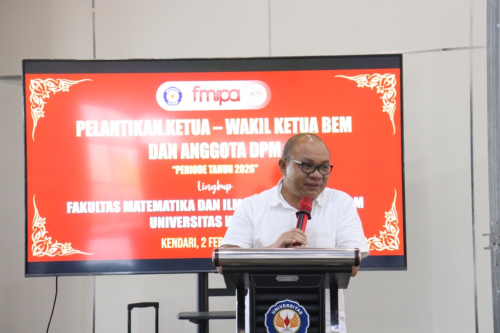 FMIPAUHO-Kendari, Fakultas Matematika dan Ilmu Pengetahuan Alam (FMIPA) secara resmi mengukuhkan kepengurusan Badan Eksekutif Mahasiswa (BEM) dan Dewan Perwakilan Mahasiswa (DPM) periode 2026. Pengukuhan tersebut ditandai dengan pelantikan Ketua dan Wakil Ketua BEM, Ketua DPM, serta anggota BEM yang berlangsung di Ruang Rapat Lantai 3 FMIPA pada Senin, 2 Februari 2026, pukul 14.00 WITA.