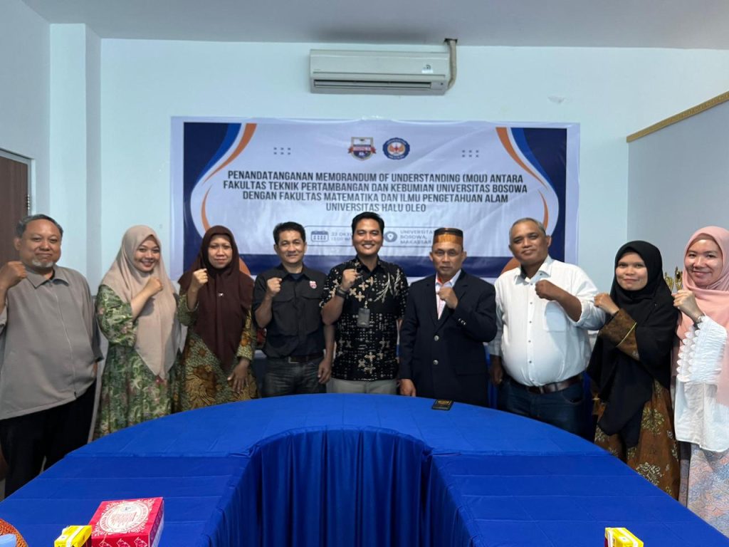 FMIPAUHO, 23 Oktober 2025 — Fakultas Teknik Pertambangan dan Kebumian (FTPK) Universitas Bosowa (UNIBOS) dan Fakultas Matematika dan Ilmu Pengetahuan Alam (FMIPA) Universitas Halu Oleo (UHO) resmi menjalin kerja sama melalui penandatanganan Memorandum of Understanding (MoU) yang dilaksanakan di kampus Universitas Bosowa, Makassar, Kamis (23/10).