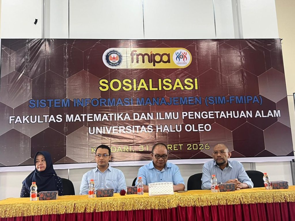 FMIPAUHO-Kendari, Fakultas Matematika dan Ilmu Pengetahuan Alam menggelar sosialisasi Sistem Informasi Manajemen FMIPA (SIM-FMIPA) di Ruang Rapat Lantai 3. Kegiatan ini dihadiri oleh seluruh unsur pimpinan, perwakilan dosen, serta tenaga kependidikan.