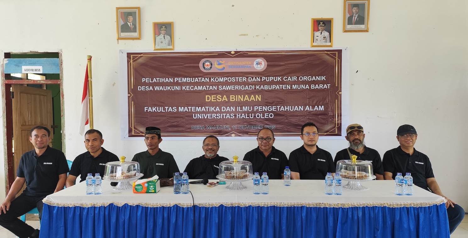 Waukuni, Muna Barat — FMIPA kembali menunjukkan komitmennya dalam mendukung pembangunan berkelanjutan di tingkat desa. Bertempat di Desa Waukuni, Kecamatan Sawerigadi, Kabupaten Muna Barat, FMIPA UHO menyelenggarakan kegiatan Pelatihan Pembuatan Komposter dan Pupuk Cair Organik sebagai bagian dari program Desa Binaan UHO. Kegiatan yang berbentuk pelatihan diikuti oleh sekitar 40 peserta yang terdiri atas perangkat...Read More